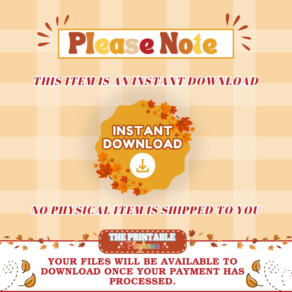 All designs are created by The Printable Playhouse. Files are for personal use only and may not be resold, shared, or redistributed.